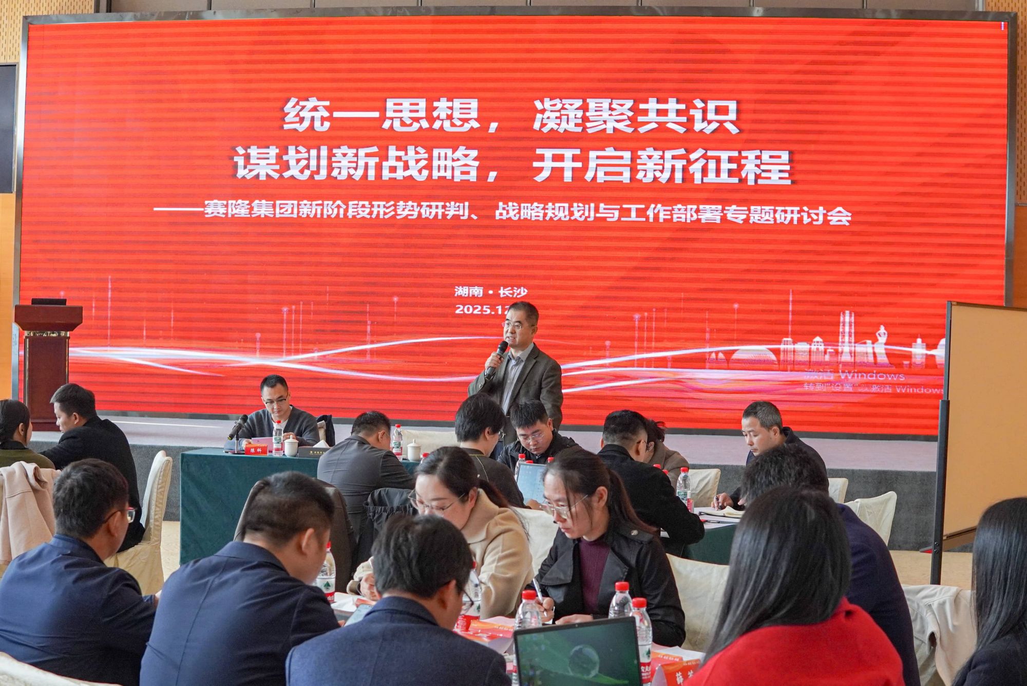 2025年12月8日下午,AGGAME集团新阶段形势研判、战略规划与工作部署专题研讨会于星沙基地四楼多功能厅顺利召开。